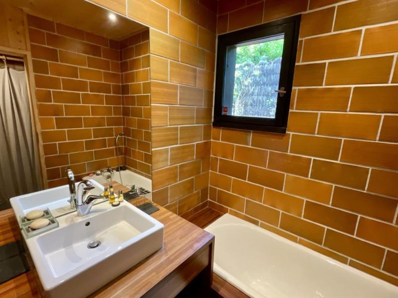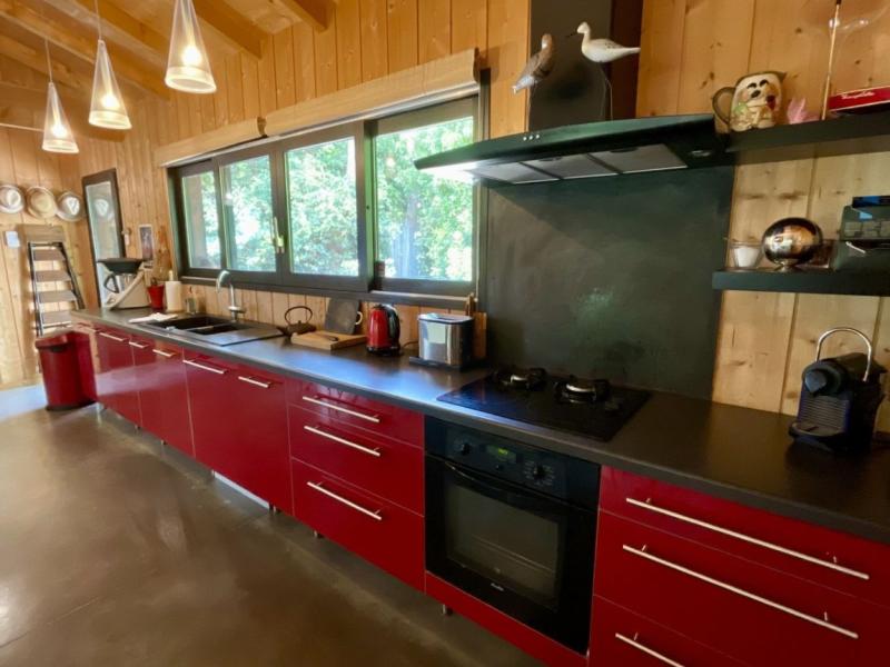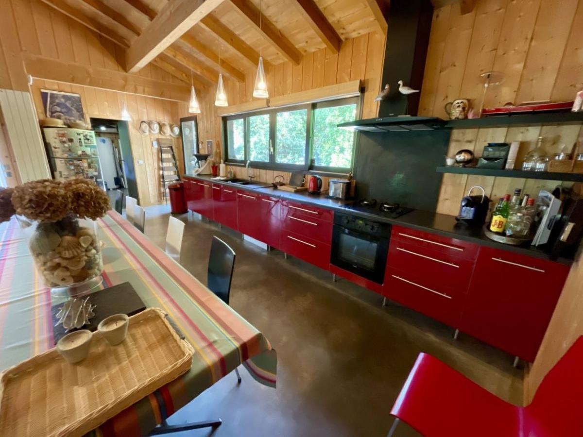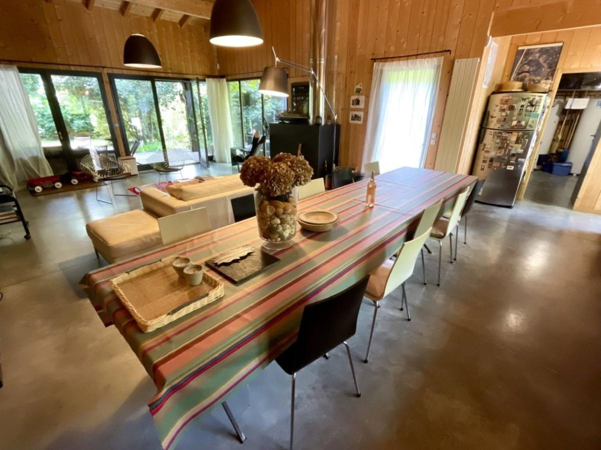 Sur un beau terrain arboré et clôture de 1500m2 proche du Mimbeau et des 44ha au Cap Ferret se situe cette belle maison. La maison se constitue de deux parties entourés de trois belles terrasses très conviviales dont une qui relies les deux parties de la maison (patio). La maison principale se compose d'un charmant espace de vie coin salon, cheminé, Wifi, grande table et cuisine ouverte équipée. Une chambre avec lit double 1.60m, salle de bain et WC privative et une chambre avec un lit double (2x0.80m) et salle de douche et WC privative. Puis une dépendance indépendante (relié à la maison par la terrasse centrale) : 2 chambres avec chacune un lit double de 1.40m et salle de douche et WC privative. Bel espace terrasse avec meubles extérieurs (table extérieur, coins canapés, transats/chaises longues), beau jardin nature, BBQ, Table de ping-pong et parking sur le terrain. Distances : Bassin à environ 300m, Océan à environ 500m, restaurants à environ 500m, magasin à environ 3km.